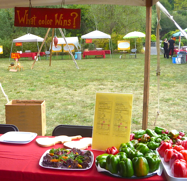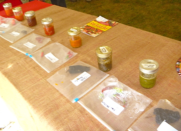 On Saturday, September 19, Cornell Plantations threw their first Pepper Party at the Botanical Gardens. A nice crowd estimated at about 800 showed up to view, smell, and taste peppers and some of the chile pepper dishes from Mexico, the American Southwest, China, Thailand, Morocco, Hungary, and West Africa. I presented a Pepper Aroma Therapy lesson that revealed the complex aromas of eight different peppers from Ancho (mild) to Barrackapore (superhot). Above is an overview of the Pepper Party and below are some fun images of the event.
