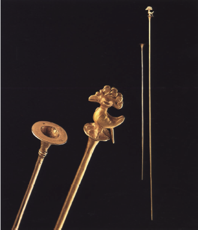 - The lime was carried around in a poporo, like this one, a hollow flask-like gold vessel with a female figure on the front. This one is 9 inches high and is from the Quimbaya culture, about A.D. 750. But how do you get the lime out of the poporo?