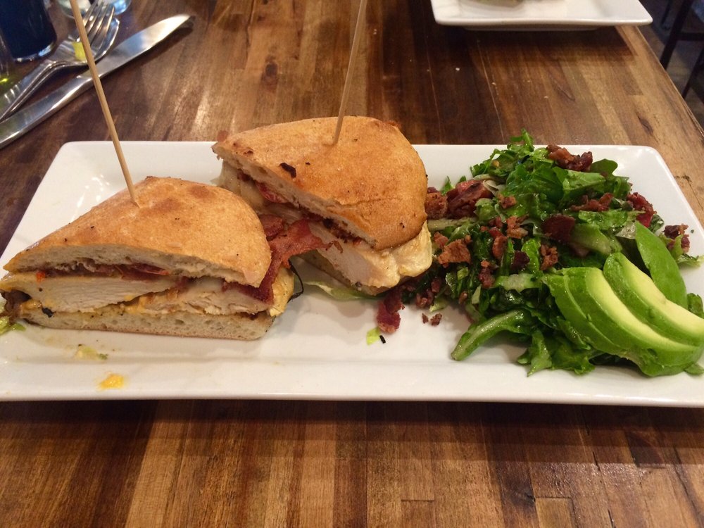 It’s been a long time since I ate at the same restaurant three times in eight days. So I have to say that The Cellar, which is not in a basement, is the best new restaurant in Albuquerque. It is a former video store that was owned by our close friends, Jeff and Nancy Gerlach. Now it’s been completely remodeled and decorated like a tapas restaurant in Spain. I know that for a fact, because I’ve been to a couple of tapas places in Spain, and they pretty much look like The Cellar. Even the bathroom is beautiful! Note the tasting bar, above. Now, about the food. I’ve had the Tuna and Salmon Crudo, which means raw with Spanish spices. Sort of Spanish sashimi. Very good. I also had a tuna sandwich unlike any other one I’ve ever tasted. This was cooked, but if I have it again, I’m going crudo. My favorite so far was the shaved lamb and avocado sandwich was wonderful. I’ve also tasted three of their soups–all great–with the one today the best, Red Chile and Bacon Soup.