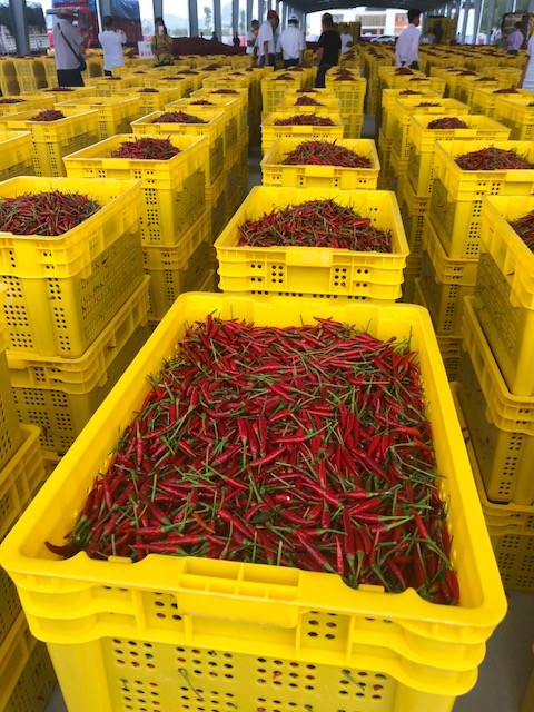 - Part of the 5-acre chilli field in Xiazi Town. There were 1,000 different varieties growing in it. The large red banner is an ad for the Capsicum Expo.